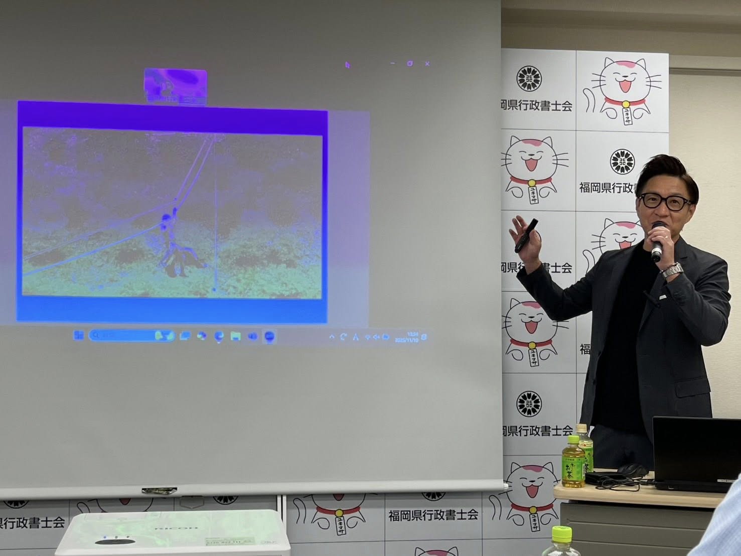 この研修は、ハイブリッド型で会場とオンラインで受講ができ、オンラインでは九州・沖縄の行政書士が受講するスタイルでした。